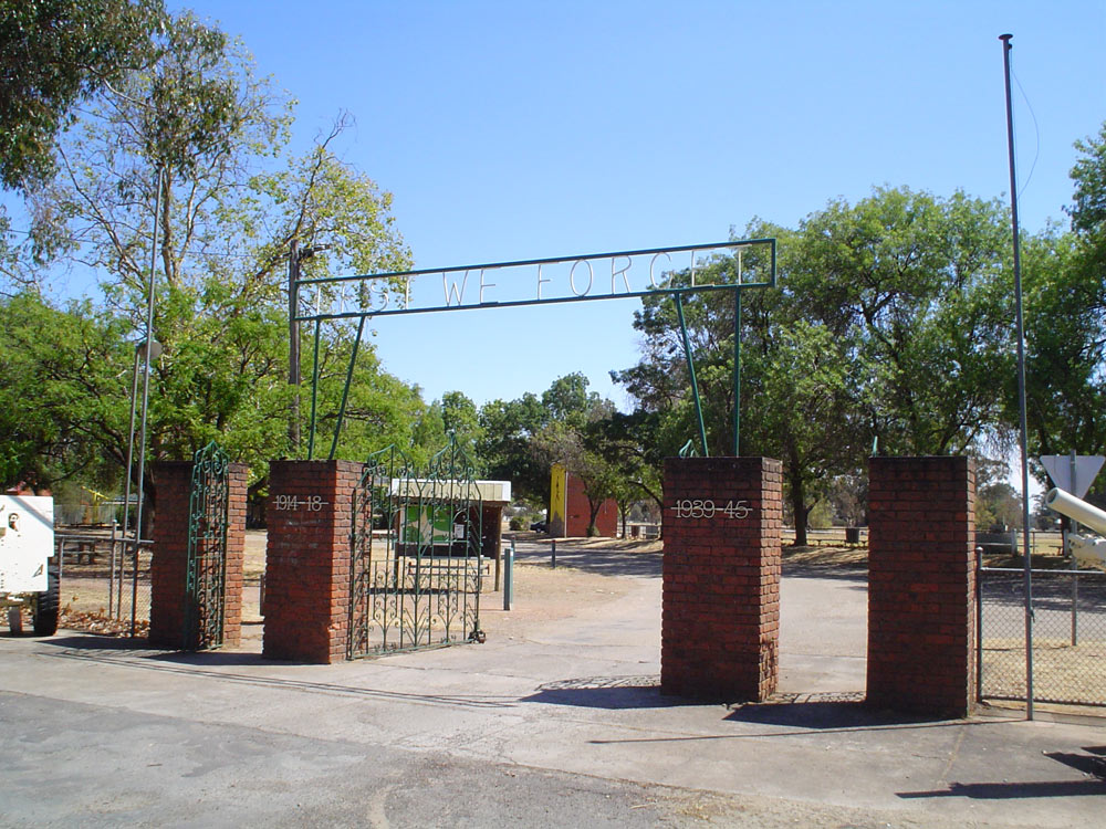 Iron gates date from 1884. "Lest We Forget" motto was added in 1957